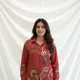 Crafted in soft natural crepe, this olive green shirt features intricate multicolor floral print on the front panel and sleeves for a refined ethnic touch. Designed with a classic collar and button-down style, it offers a smooth drape and comfortable fit. Perfect for elevating your everyday look with effortless elegance.