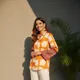 A flowy, lightweight purple shirt featuring delicate dotted motifs and contrasting printed cuffs, perfect for adding a touch of boho elegance to any casual look.